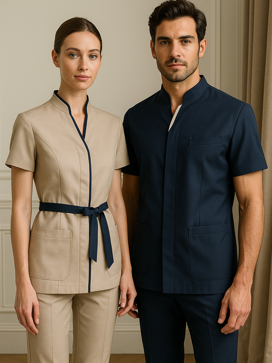 Des tissus techniques choisis pour leur résistance au lavage intensif, alliés à une coupe d’une grande précision.